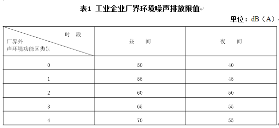 1.工業企業廠界環境噪聲不得超過表1規定的排放限值。